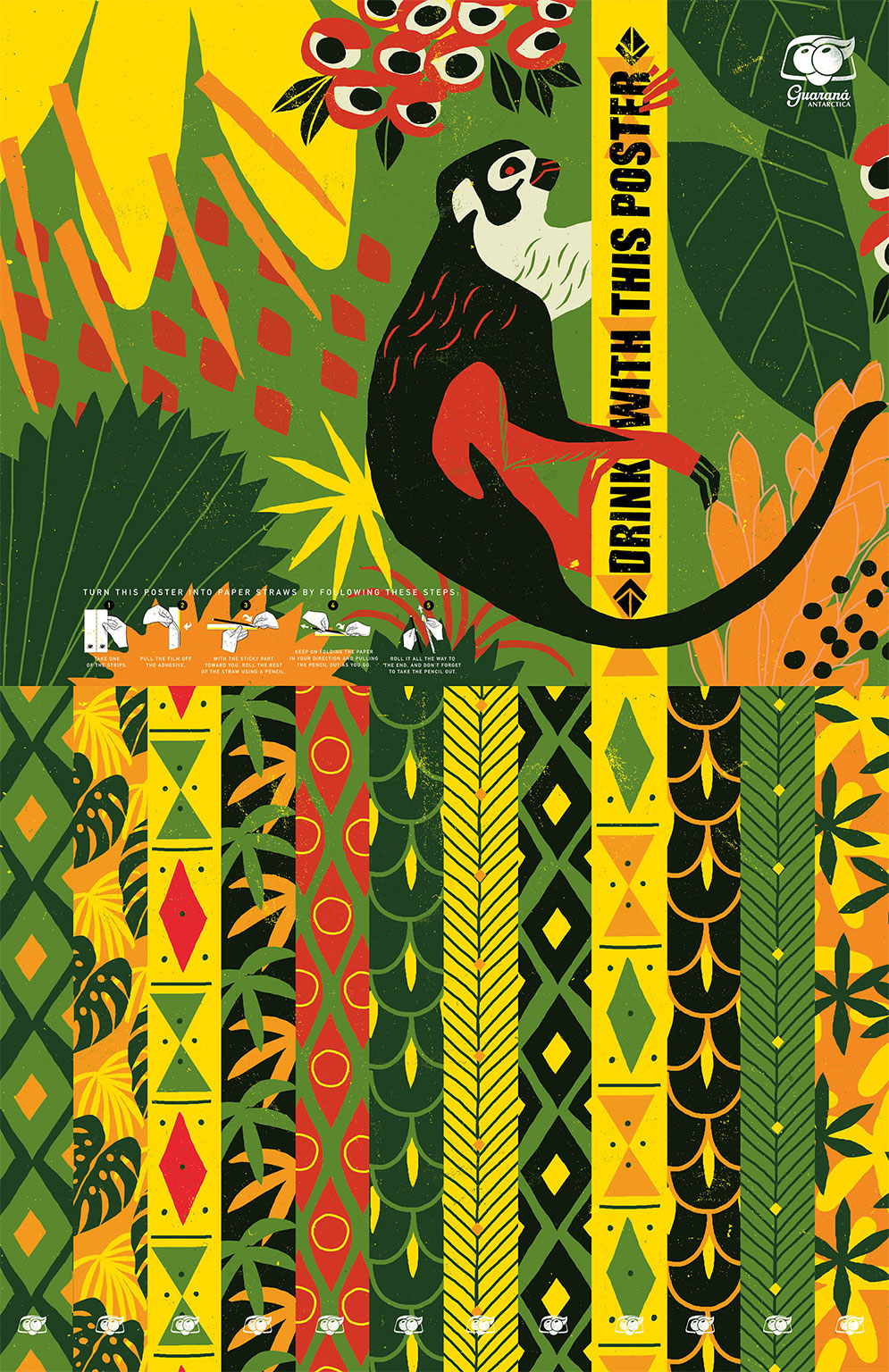 We developed a series of ads and posters that can be turned into eco-friendly, reusable, exclusive paper straws made with nontoxic material, which decompose in up to 12 months. Each piece makes 14 straws. In other words, for every poster, 14 people can drink Guaraná Antarctica without harming Brazil’s ecosystem.